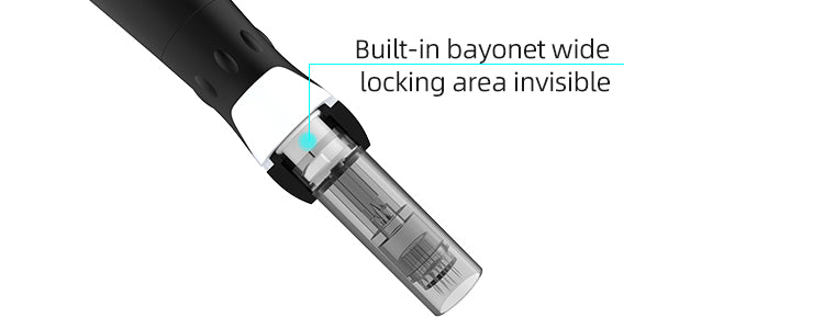 Invisible bayonet wide locking More stable and safe. and easy to remove and replace needle cartridges.